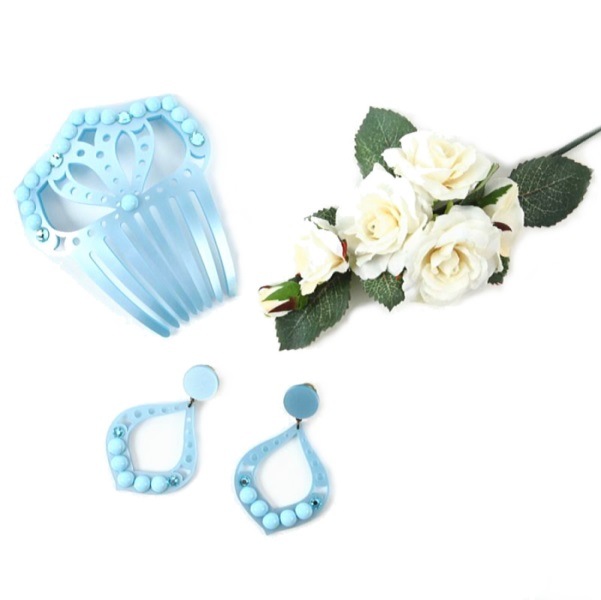 おすすめポイント: セビージャの女性をトリコにする、PERISデザインのアクセサリ。 小さなビーズをちりばめた、繊細なデザインのセットです。 速い曲でも邪魔にならない軽いペイネタとイヤリング(ピアス)です。 アレンジしやすい小さなローズを集めたコサージュSofiaつき。 --- 【ピアス針つき】ピアス針とクリップが両方ついたスペインの留め具を使用しています。 --- 素材: 櫛:プラスチック イヤリング(ピアス):プラスチック・金属 コサージュ 化繊など サイズ(縦×横)cm: 櫛:約10.5(飾りのみの高さ:5.9)×8.8 イヤリング(ピアス):約6.8(飾り部分の長さ:5.2)×4.1 コサージュ 約13.0×7.0(茎の部分は含みません) (掲載のサイズは製品の実測値です。多少の個体差がありますがご容赦ください。) |