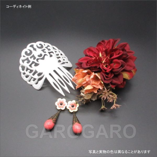 おすすめポイント: 色のバリエーションが豊富になったフラメンコ用の定番ペイネタ 踊りの邪魔にならない軽さが嬉しい大きくて華やかな印象の形のペイネタ。 色のバリエーションが豊富なので、お好みの色がきっと見つかるはず。 手頃な価格なので、グループで揃えるのにピッタリです。 お揃いのペイネシージョ、イヤリング、ピアス、ブレスレットもあるので、一緒にどうぞ。 --- 素材: プラスチック サイズ(縦の長さ×横幅)cm: 約13.0(飾りのみの高さ:8.3)×14.5 (掲載のサイズは製品の実測値です。多少の個体差がありますがご容赦ください。) 【コーディネイト例】 ・ワイン色の大きなダリアの花束風 FA-61 ・イヤリング(ピアス) Rocio(ロシオ) 色:オールドローズ(黒丸) |