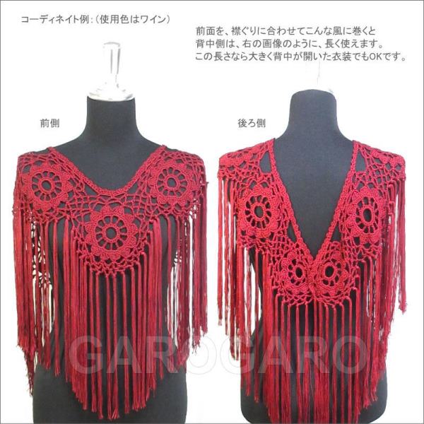 補足説明 お手入れ: ドライクリーニング(信頼のあるお店にご依頼ください) ・フレコ(フリンジ)が縮れたときには、スチームアイロン(中温)で伸ばすことができます。 ----- ・稀に水濡れなどで色移りする場合があります。 ・ご覧になるモニターによって、実物と写真の色合いが異なって見える場合があります。 ・糸の端が出ていることがありますが、ほつれてしまいますので、切ったり引っ張ったりしないでください。 ・スペイン製です。仕上がりが多少雑なことがあります。入荷時期によっては、ゲージ(編み目の大きさ)や糸の太さが多少異なり、仕上がりのサイズが変わる場合があります。不具合が大きく目立つ場合は検品時に取り除きますが、舞台でご使用するのに問題ないと判断できる程度である場合は良品と判断致します。あらかじめご了承下さい。 |