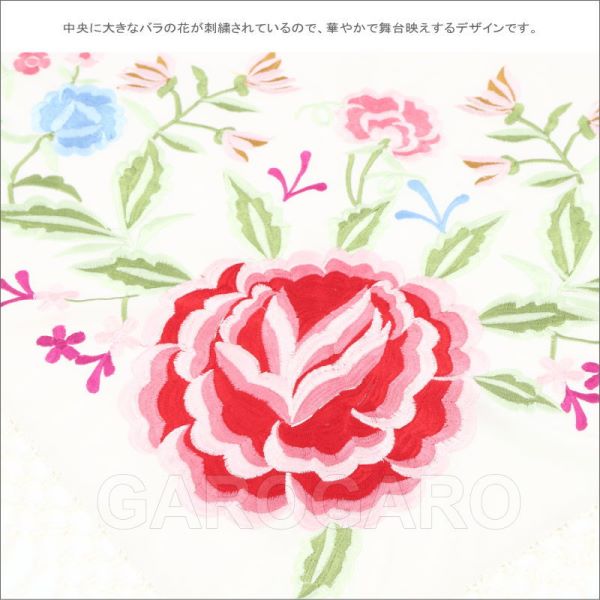 マドローニョのついた刺繍のショール Jardin(ハルディン) 赤×中央の花:赤紫系[フラメンコ用][スペイン直輸入]