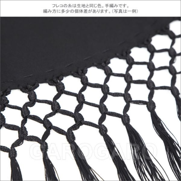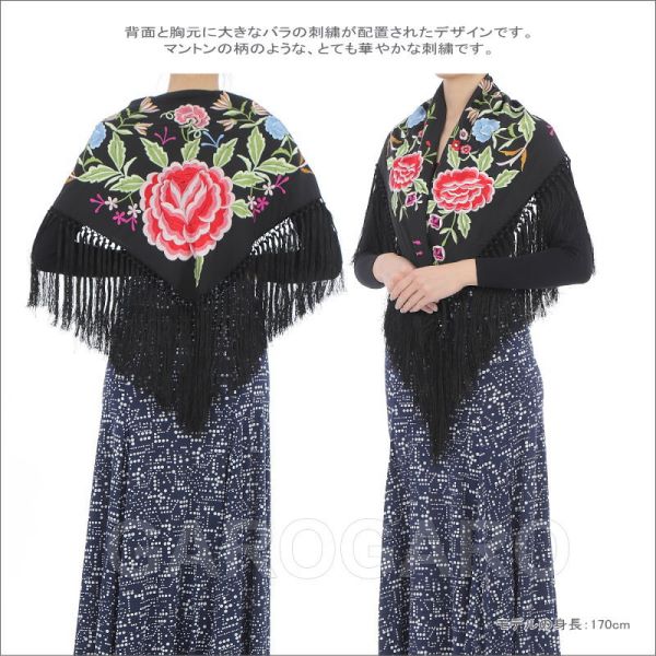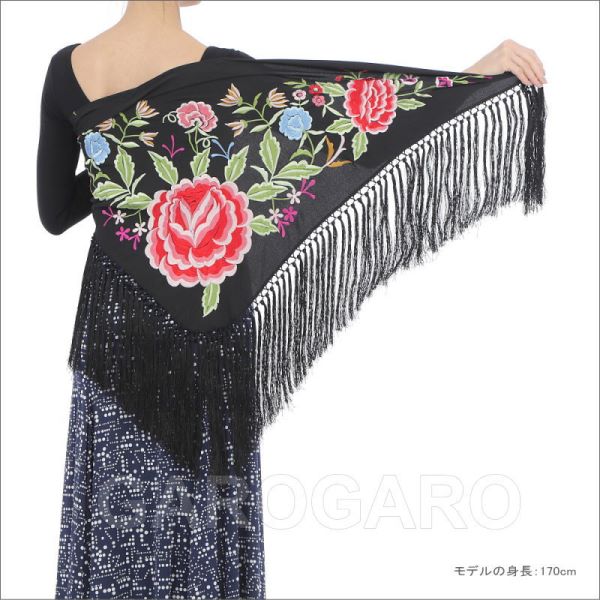 補足説明 お手入れ: ドライクリーニング(信頼のあるお店にご依頼ください) ・水洗いは避けてください。 ・フレコ(フリンジ)が縮れたときには、スチームアイロン(中温)で伸ばすことができます。 ----- ・刺繍の柄、色の組み合わせが画像と多少異なる場合がありますがご容赦ください。 ・生地部分が濃色のショールは、フレコと生地がこすれる部分が白っぽく見える跡がついてしまいますが、これは素材の特性で避けられません。 ・稀に水濡れなどで色移りする場合があります。 ・ご覧になるモニターによって、実物と写真の色合いが異なって見える場合があります。 ・刺繍や縫い目の糸の端が出ていることがありますが、ほつれてしまいますので、切ったり引っ張ったりしないでください。 ・スペイン製です。縫製が多少雑なことがあります。糸つれ、色むらなどがあったり、縫製用の印、針穴などが残っている場合があります。大きく目立つ場合は検品時に取り除きますが、舞台でご使用するのに問題ないと判断できる程度である場合は良品と判断致します。あらかじめご了承下さい。 |