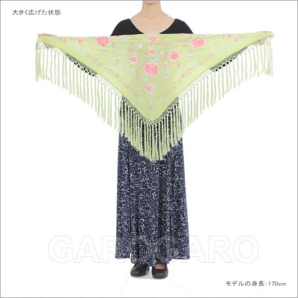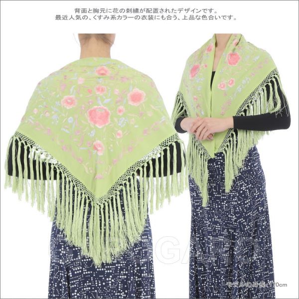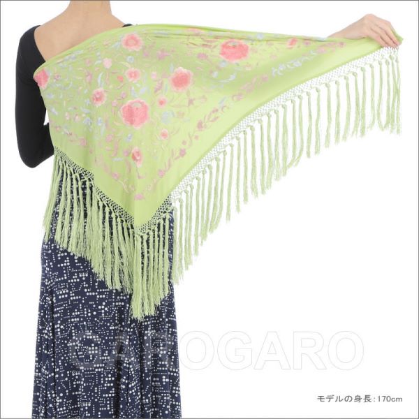 補足説明 お手入れ: ドライクリーニング(信頼のあるお店にご依頼ください) ・水洗いは避けてください。 ・フレコ(フリンジ)が縮れたときには、スチームアイロン(中温)で伸ばすことができます。 ----- ・刺繍の柄、色の組み合わせが画像と多少異なる場合がありますがご容赦ください。 ・生地部分が濃色のショールは、フレコと生地がこすれる部分が白っぽく見える跡がついてしまいますが、これは素材の特性で避けられません。 ・稀に水濡れなどで色移りする場合があります。 ・ご覧になるモニターによって、実物と写真の色合いが異なって見える場合があります。 ・刺繍や縫い目の糸の端が出ていることがありますが、ほつれてしまいますので、切ったり引っ張ったりしないでください。 ・スペイン製です。縫製が多少雑なことがあります。糸つれ、色むらなどがあったり、縫製用の印、針穴などが残っている場合があります。大きく目立つ場合は検品時に取り除きますが、舞台でご使用するのに問題ないと判断できる程度である場合は良品と判断致します。あらかじめご了承下さい。 |
