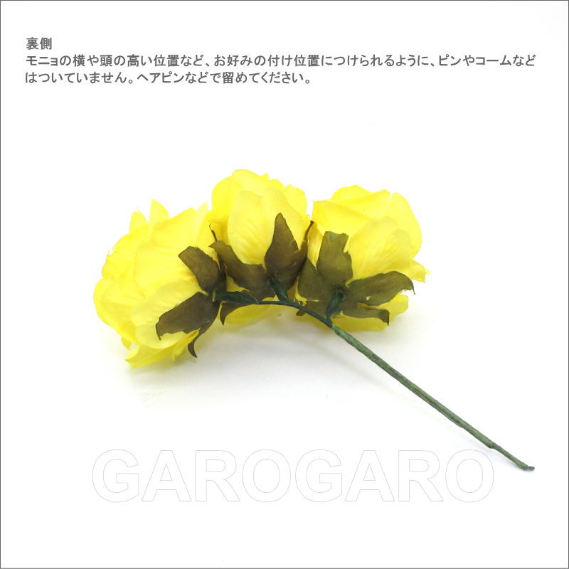 補足説明 ・モニョ(おだんごに結った髪型)の横や頭の高い位置など、お好みの付け位置につけられるように、ピンやコームなどはついていません。ヘアピンなどで留めてください。 ・ご覧になるモニターによって、実物と写真の色合いが異なって見える場合があります。 ・衛生上の理由から、商品が入った透明な袋を開封後は返品、交換ができません。 ・布製の造花なので、端にほつれや染ムラがあることがあります。 ・入荷時期によって、花の大きさや色合い、花束風の商品は花の配置、小花や葉の個数がわずかに異なることがあります。 大きく目立つ場合は検品時に取り除きますが、舞台でご使用するのに問題ないと判断できる程度である場合は良品と判断致します。あらかじめご了承下さい。 ・稀に水濡れなどで色落ちする場合があります。ご注意ください。 |