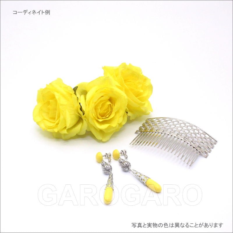 おすすめポイント: スペイン製の小さなバラを3輪並べたフローレス。 横につけるのに適した形ですが、スペイン人のように頭の高い位置にティアラのように飾ったり、コルドベスを被るときは低い位置につけても。 ----- 色の組み合合わせを変えることも可能です。ご注文前にメール等でご相談ください。 組み合わせを変えたものは特注品になるため、交換や返品はできません。また、ご用意するのに3?4営業日かかります。 --- 素材: 化繊、金属など サイズ(縦×横)cm: 花部分のサイズ 約14.0×7.0 (茎は含まず) (掲載のサイズは製品の実測値です。多少の個体差がありますがご容赦ください。) 【コーディネイト例】 ・イヤリング Penelope(ペネロペ) 色:黄 ・メタルのペイネシージョ(小さな櫛) Espirea(エスピレア) 色:シルバー |