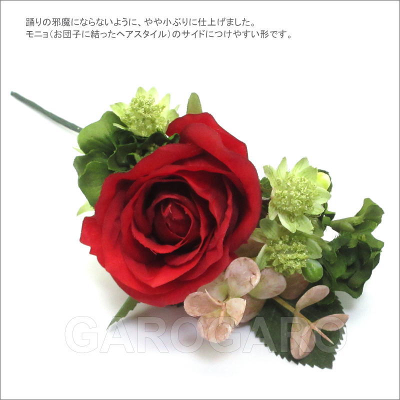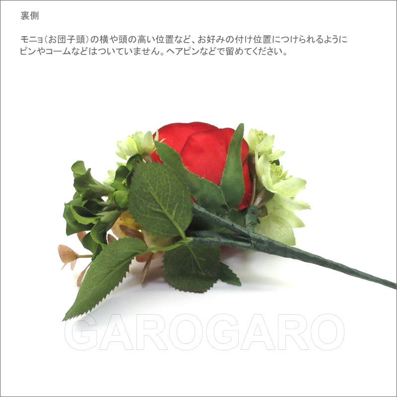 補足説明 ・モニョ(おだんごに結った髪型)の横や頭の高い位置など、お好みの付け位置につけられるように、ピンやコームなどはついていません。ヘアピンなどで留めてください。 ・ご覧になるモニターによって、実物と写真の色合いが異なって見える場合があります。 ・衛生上の理由から、商品が入った透明な袋を開封後は返品、交換ができません。 ・布製の造花なので、端にほつれや染ムラがあることがあります。 ・入荷時期によって、花の大きさや色合い、花束風の商品は花の配置、小花や葉の個数がわずかに異なることがあります。 大きく目立つ場合は検品時に取り除きますが、舞台でご使用するのに問題ないと判断できる程度である場合は良品と判断致します。あらかじめご了承下さい。 ・稀に水濡れなどで色落ちする場合があります。ご注意ください。 |