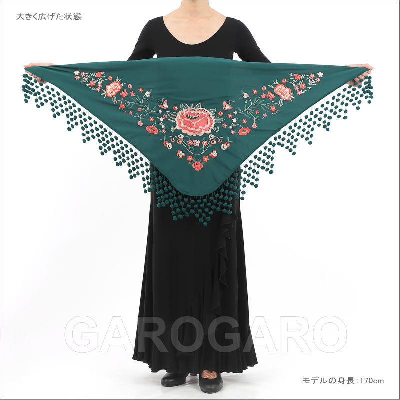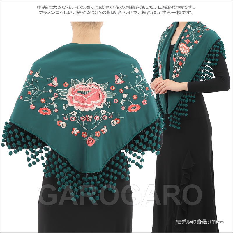 補足説明 お手入れ: ドライクリーニング(信頼のあるお店にご依頼ください) ・水洗いは避けてください。 ・フレコ(フリンジ)が縮れたときには、スチームアイロン(中温)で伸ばすことができます。 ----- ・刺繍の柄、色の組み合わせが画像と多少異なる場合がありますがご容赦ください。 ・生地部分が濃色のショールは、フレコと生地がこすれる部分が白っぽく見える跡がついてしまいますが、これは素材の特性で避けられません。 ・稀に水濡れなどで色移りする場合があります。 ・ご覧になるモニターによって、実物と写真の色合いが異なって見える場合があります。 ・刺繍や縫い目の糸の端が出ていることがありますが、ほつれてしまいますので、切ったり引っ張ったりしないでください。 ・スペイン製です。縫製が多少雑なことがあります。糸つれ、色むらなどがあったり、縫製用の印、針穴などが残っている場合があります。大きく目立つ場合は検品時に取り除きますが、舞台でご使用するのに問題ないと判断できる程度である場合は良品と判断致します。あらかじめご了承下さい。 |