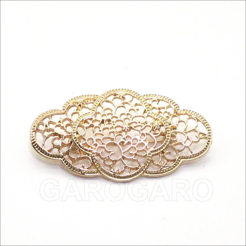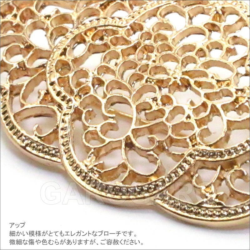 おすすめポイント: 華やかな透かし模様が美しい、程よいサイズのブローチです。 針を引っかけて止めるタイプの留め具です。 --- 素材: 金属 サイズ(縦×横)cm: 約3.0×5.8 (掲載のサイズは製品の実測値です。多少の個体差がありますがご容赦ください。) |