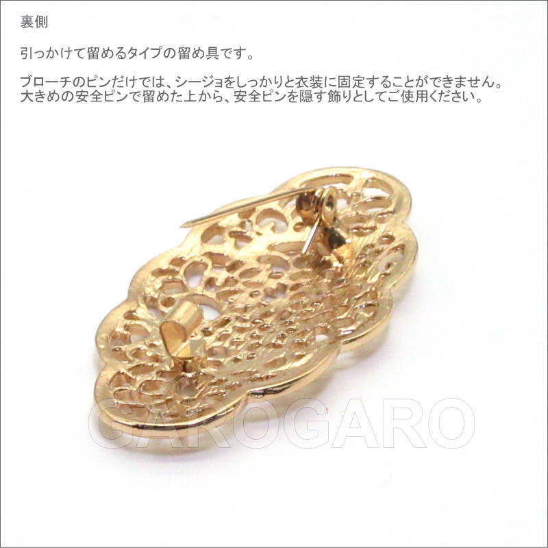 補足説明 ・ご覧になるモニターによって、実物と写真の色合いが異なって見える場合があります。 ・ブローチのピンは細いため、衣装にシージョを固定することができません。大きな安全ピンで固定したのち、安全ピンを隠すようにブローチをつけてご使用ください。 ・この商品は、摩擦や水濡れなどにより、稀に色落ちする場合がございます。あらかじめご了承下さい。 |