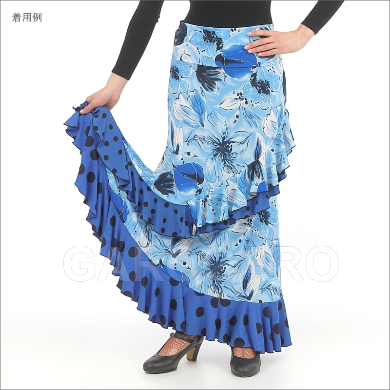 スカート Capricho(カプリチョ) モデル:A5-2 花柄 婦人用 サイズ:XS(XP) 紺×サーモン色のフリル[フラメンコ用][スペイン直輸入]