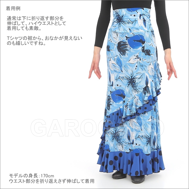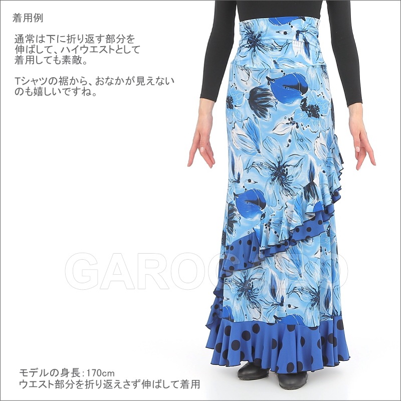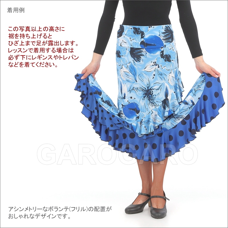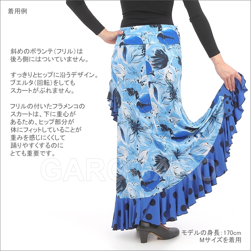 スカート Capricho(カプリチョ) モデル:D5-4 花柄 婦人用 サイズ:L(G) 紺×オレンジ系の花[フラメンコ用][スペイン直輸入]