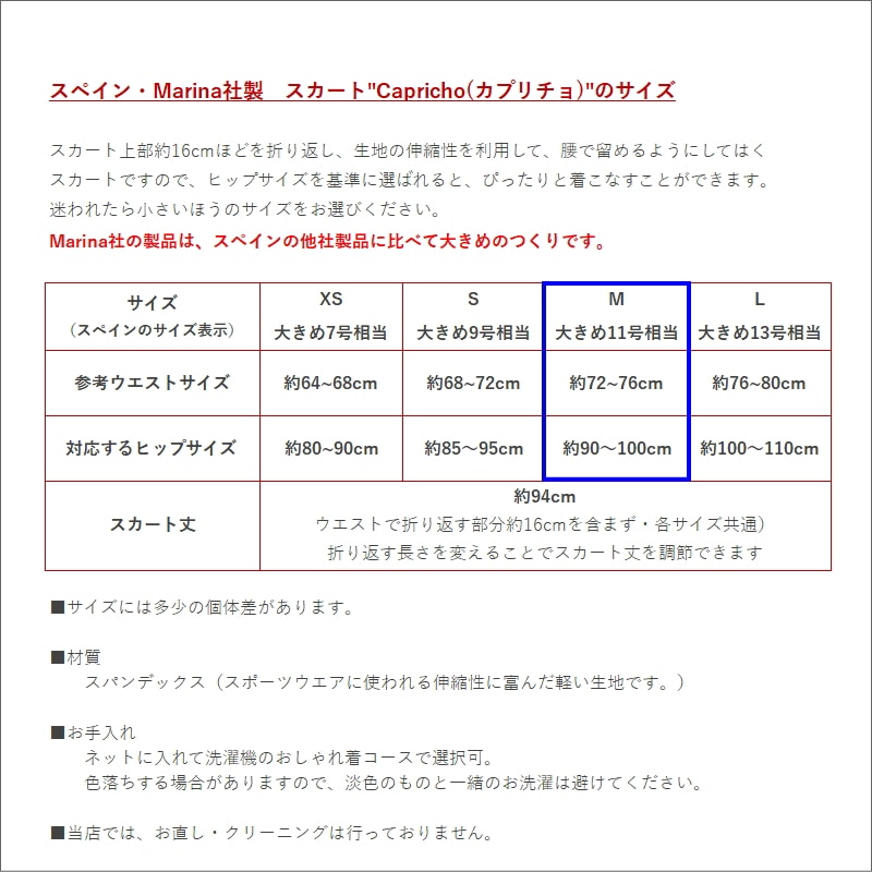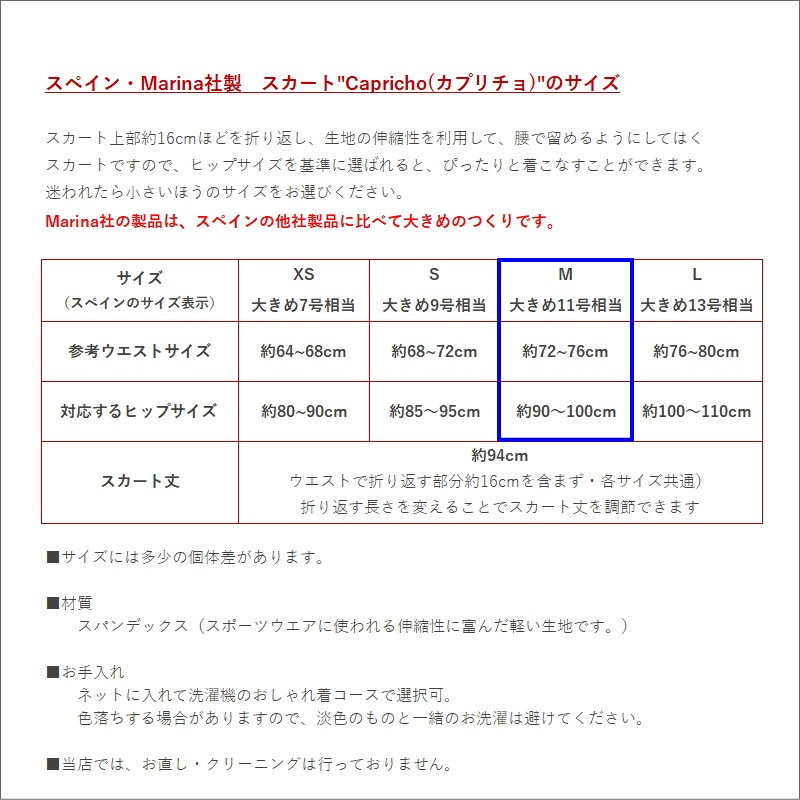 おすすめポイント: フラメンコの本場セビリヤから。 スペインだけでなく、日本でも人気の高いMarina社のスカートです。デザイナーが生地の色や柄から得たインスピレーションで、魅力的なレッスン用スカートを一点一点デザインしています。 軽くて持ち運びに便利なだけでなく、家で洗濯もできるところがポイント高し。 スカートの開きは控えめなので、下にレギンスなどの着用をおすすめします。 --- 素材: ポリエステル、ポリウレタンなど サイズ(cm): M 詳しいサイズについてはサイズ表をご覧ください。 (掲載のサイズは製品の実測値です。多少の個体差がありますがご容赦ください。) |