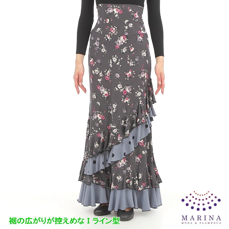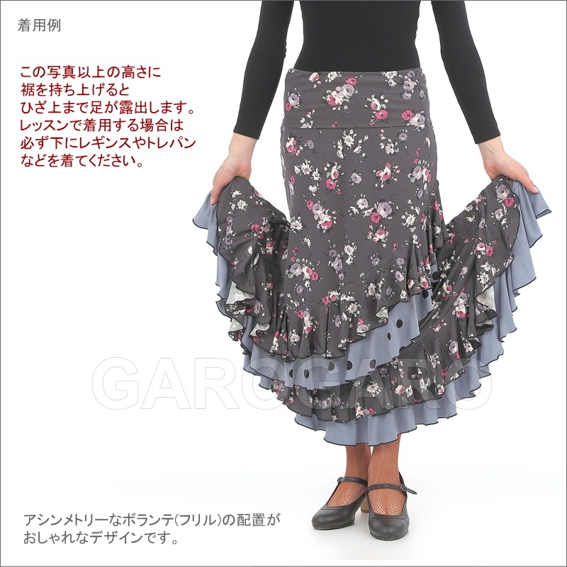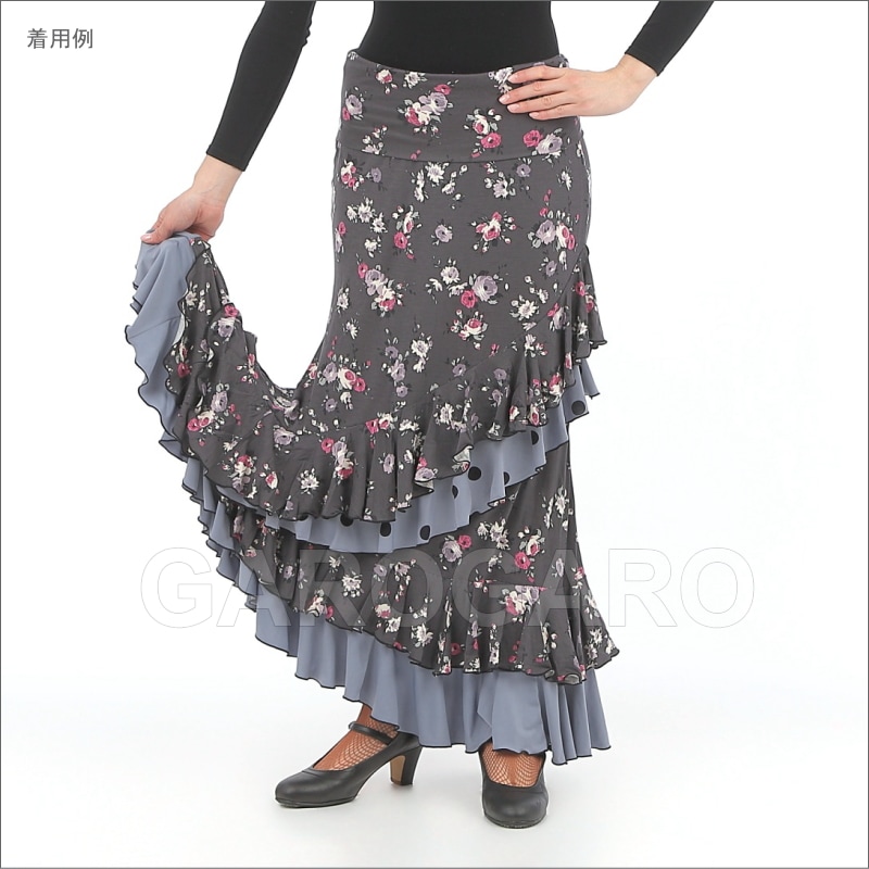 スカート Capricho(カプリチョ) モデル:C5-3 花柄 婦人用 サイズ:M ブルー系[フラメンコ用][スペイン直輸入]