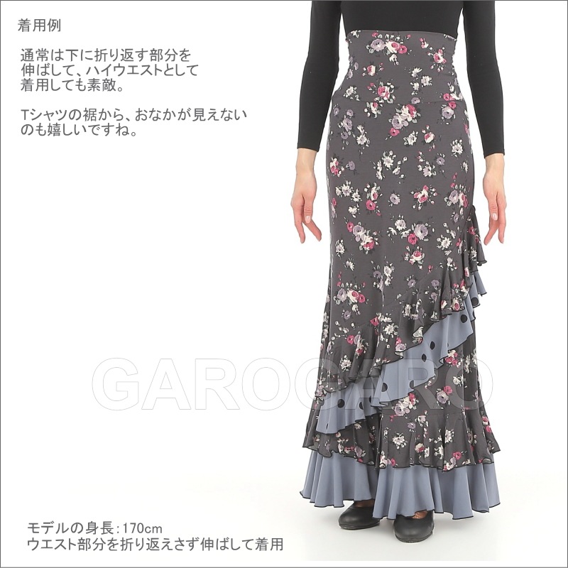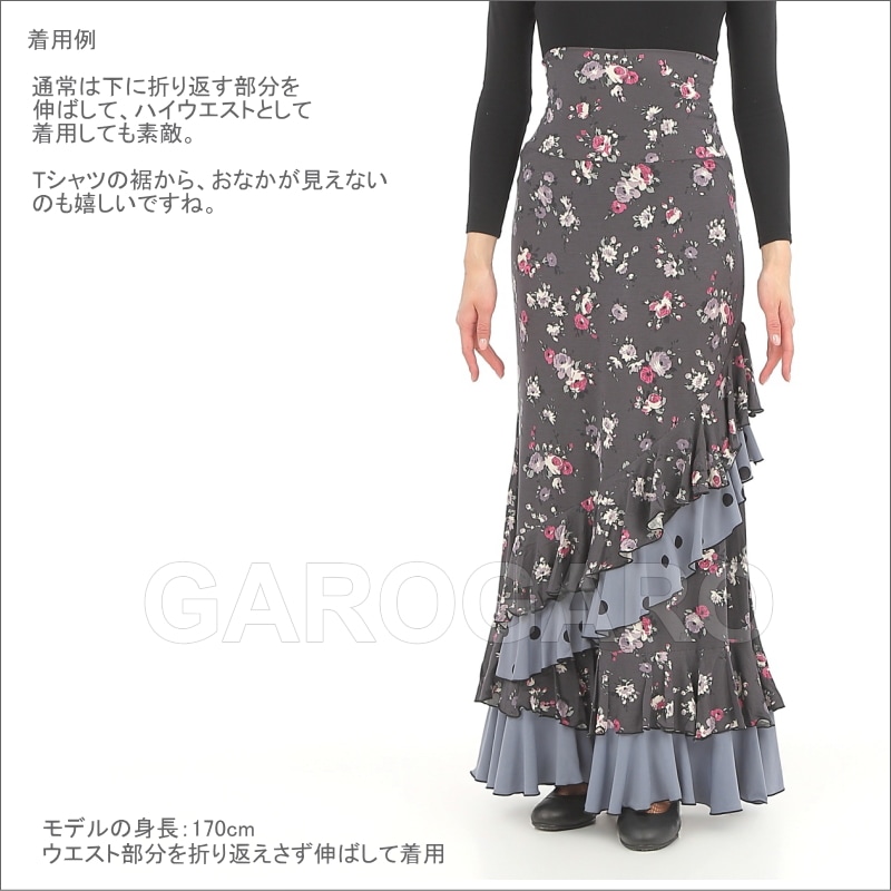 スカート Capricho(カプリチョ) モデル:A5-4 バラ柄 婦人用 サイズ:XS(XP) モスグリーン系[フラメンコ用][スペイン直輸入]