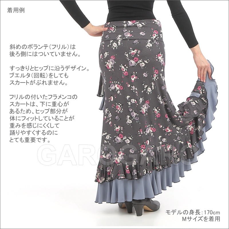 スカート Capricho(カプリチョ) モデル:D5-4 花柄 婦人用 サイズ:L(G) 紺×オレンジ系の花[フラメンコ用][スペイン直輸入]