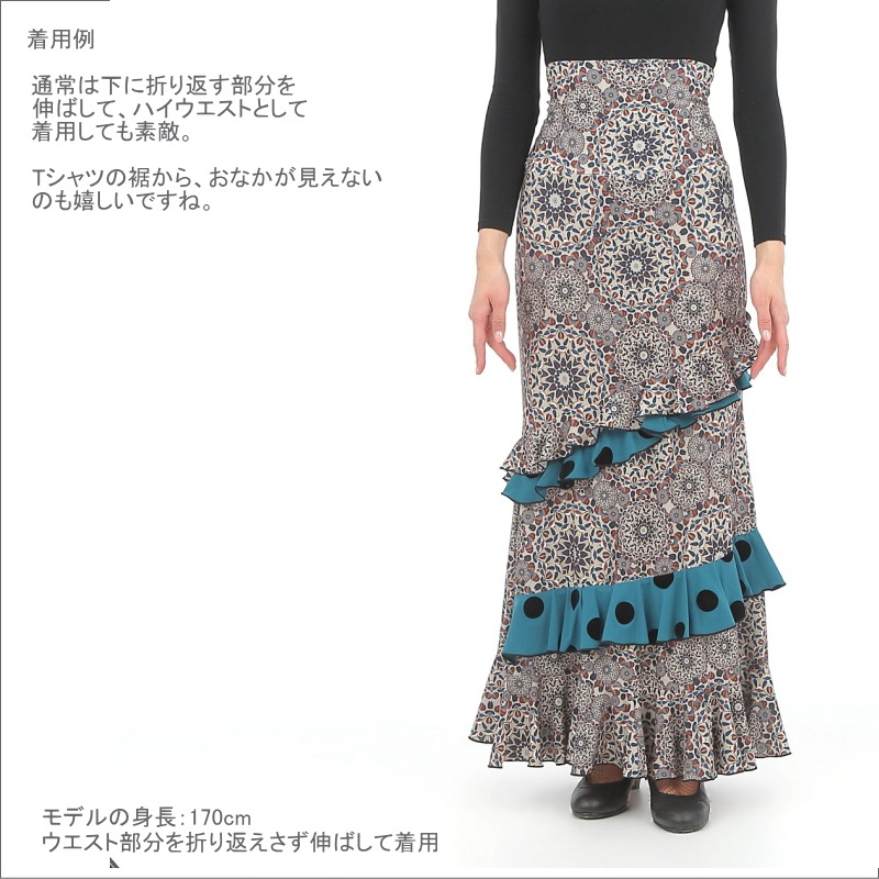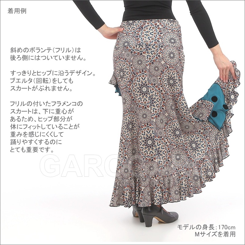 スカート Capricho(カプリチョ) モデル:D5-5 ペーズリー柄 婦人用 サイズ:L(G) 茶×オレンジ系[フラメンコ用][スペイン直輸入]