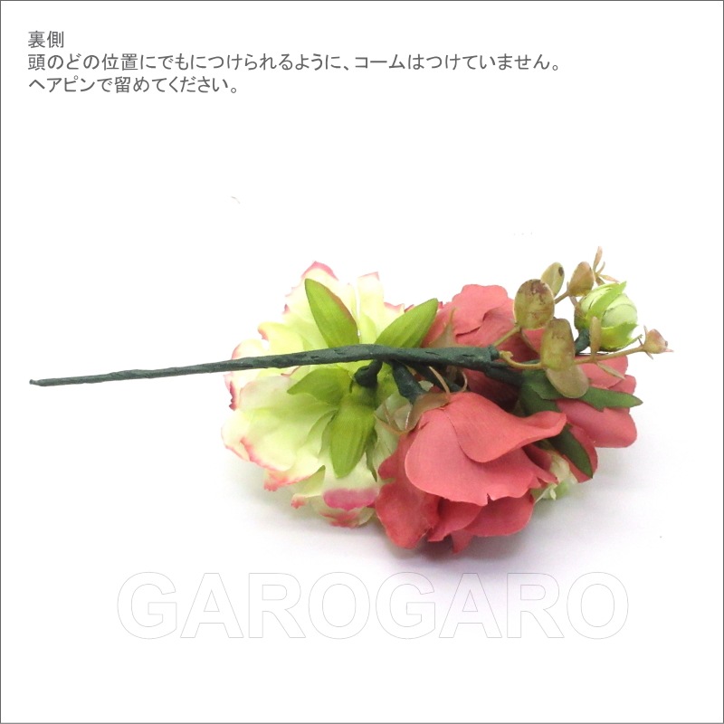 補足説明 ・モニョ(おだんごに結った髪型)の横や頭の高い位置など、お好みの付け位置につけられるように、ピンやコームなどはついていません。ヘアピンなどで留めてください。 ・ご覧になるモニターによって、実物と写真の色合いが異なって見える場合があります。 ・衛生上の理由から、商品が入った透明な袋を開封後は返品、交換ができません。 ・布製の造花なので、端にほつれや染ムラがあることがあります。 ・入荷時期によって、花の大きさや色合い、花束風の商品は花の配置、小花や葉の個数がわずかに異なることがあります。 大きく目立つ場合は検品時に取り除きますが、舞台でご使用するのに問題ないと判断できる程度である場合は良品と判断致します。あらかじめご了承下さい。 ・稀に水濡れなどで色落ちする場合があります。ご注意ください。 |