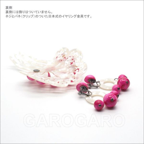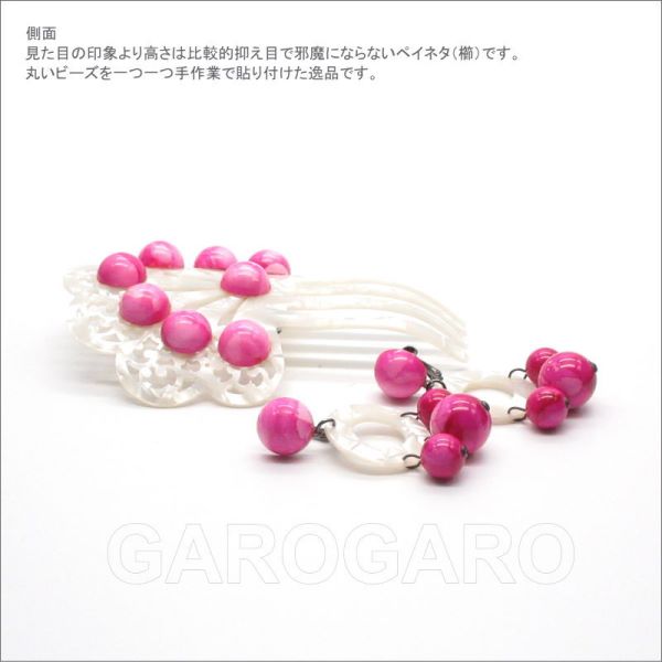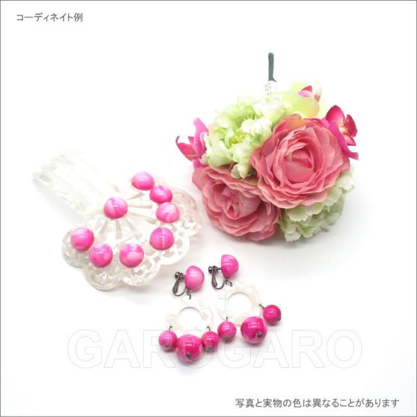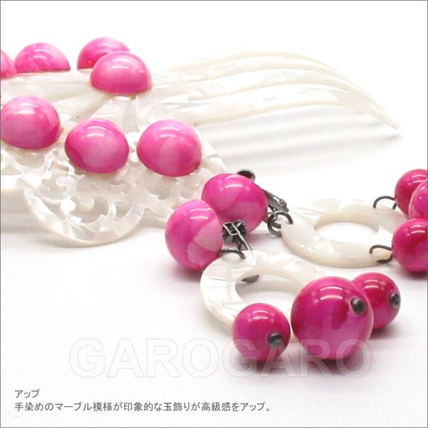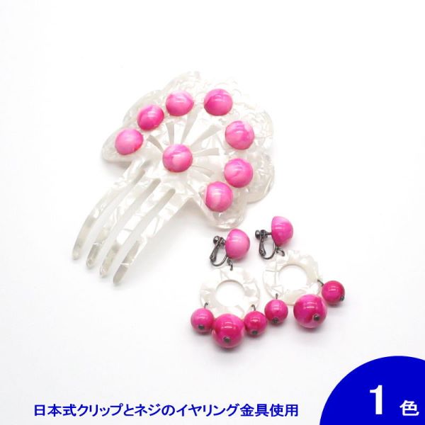 [セット価格]パールホワイト×マーブルビーズのペイネタとイヤリング(ピアス) のセット(AY-31) フシアピンク[フラメンコ用][スペイン直輸入][メール便]