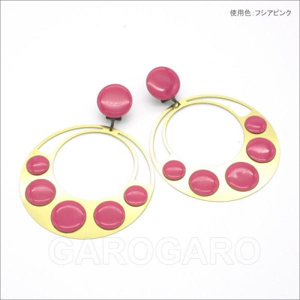 おすすめポイント: ■水玉の色もバリエーションが豊富で、色の系統ごとに4ページに分けて販売しています。 フラメンコらしい大きな輪とカラフルな水玉が華やかなデザインです。 薄くて軽いので扱いやすいイヤリングです。 --- 【ピアス針なし】クリップとねじで留める日本式の留め具を使用しています。 --- 素材: プラスチック・金属 サイズ(縦の長さ×横幅)cm: 約10.0(飾り部分の長さ:7.5)×7.5 (掲載のサイズは製品の実測値です。多少の個体差がありますがご容赦ください。) 【コーディネイト例】 ・ラナンキュラスとバラの花束風 Malva(マルバ) ペールモーヴ系 ・メタルのペイネタ(櫛) Amor(アモール) 色:ゴールド |