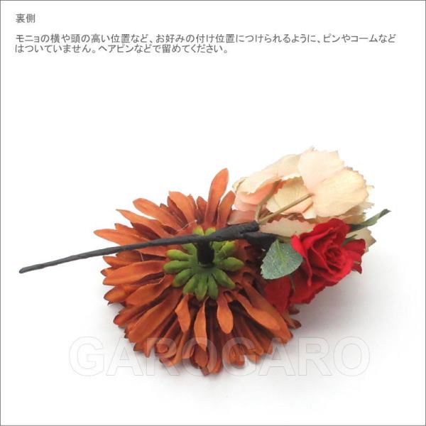 補足説明 ・モニョ(おだんごに結った髪型)の横や頭の高い位置など、お好みの付け位置につけられるように、ピンやコームなどはついていません。ヘアピンなどで留めてください。 ・ご覧になるモニターによって、実物と写真の色合いが異なって見える場合があります。 ・衛生上の理由から、商品が入った透明な袋を開封後は返品、交換ができません。 ・布製の造花なので、端にほつれや染ムラがあることがあります。 ・入荷時期によって、花の大きさや色合い、花束風の商品は花の配置、小花や葉の個数がわずかに異なることがあります。 大きく目立つ場合は検品時に取り除きますが、舞台でご使用するのに問題ないと判断できる程度である場合は良品と判断致します。あらかじめご了承下さい。 ・稀に水濡れなどで色落ちする場合があります。ご注意ください。 |