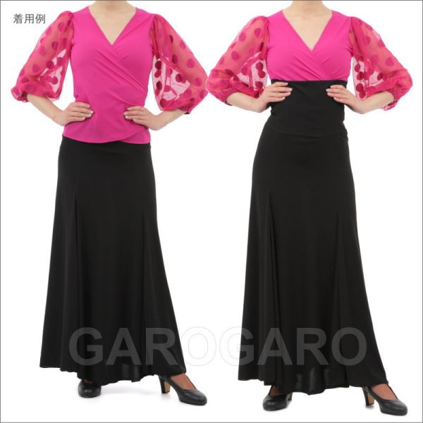 ブラウス(カシュクールタイプ) 水玉柄のシアー袖 色:黒 [フラメンコ用][スペイン直輸入]