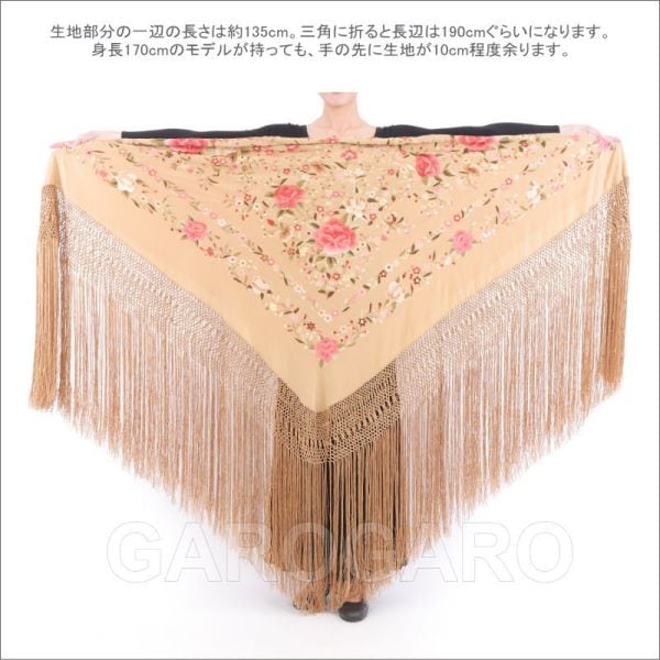 補足説明 お手入れ: ドライクリーニング(信頼のあるお店にご依頼ください) ・水洗いは避けてください。 ・フレコ(フリンジ)が縮れたときには、スチームアイロン(中温)で伸ばすことができます。 ----- ・刺繍の柄、色の組み合わせが画像と多少異なる場合がありますがご容赦ください。 ・生地部分が濃色のマントンは、フレコと生地がこすれる部分が白っぽく見える跡がついてしまいますが、これは素材の特性で避けられません。 ・稀に水濡れなどで色移りする場合があります。 ・ご覧になるモニターによって、実物と写真の色合いが異なって見える場合があります。 ・刺繍や縫い目の糸の端が出ていることがありますが、ほつれてしまいますので、切ったり引っ張ったりしないでください。 ・スペイン製です。縫製が多少雑なことがあります。糸つれ、色むらなどがあったり、縫製用の印などが残っている場合があります。大きく目立つ場合は検品時に取り除きますが、舞台でご使用するのに問題ないと判断できる程度である場合は良品と判断致します。あらかじめご了承下さい。 |