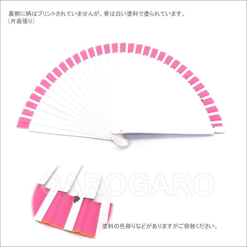 補足説明 製造元の都合により、長期欠品、または製造終了になる恐れがあります。本番用にできるだけ予備をご用意ください。 使用している塗料は耐水性の塗料ですが、まれに、摩擦や水濡れなどにより、色落ち・色移りがある場合がございます。長時間濡れた衣類と一緒にしないでください。 天然の木を使い、手加工で仕上げる扇のため、以下の点は免責とさせて頂きます。どうぞご容赦ください。 ・塗装のむら、製造時に表面についた小さな傷、ささくれなどがある場合がございます。 ・天然の木材を使用しておりますので、骨組みに反りがあったり、不ぞろいだったりします。 ・入荷時期によって色合いが異なったり、ペイントや透かし彫り、レースがある扇の場合はこれらの色や柄などが掲載画像と異なることがあります。 ・淡色の張地の場合、骨を貼り付ける接着剤や骨組み自体の色が透けて見えます。また、ペイントが裏にしみて見えることがあります。 ダンス用小物としてご利用いただく上で問題になる不具合がある商品は、発送時の検品で取り除いています。ご安心ください。 |