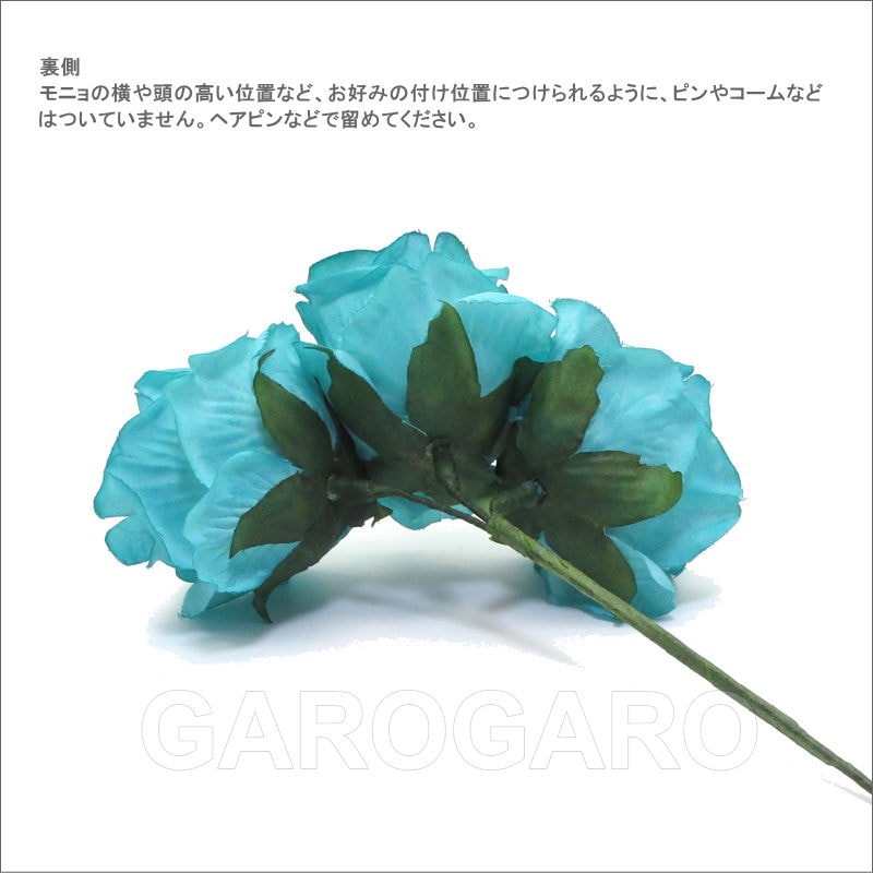 3輪の小さいバラ Granadino(グラナディーノ) ターコイズブルー3輪[フラメンコ用][スペイン直輸入]