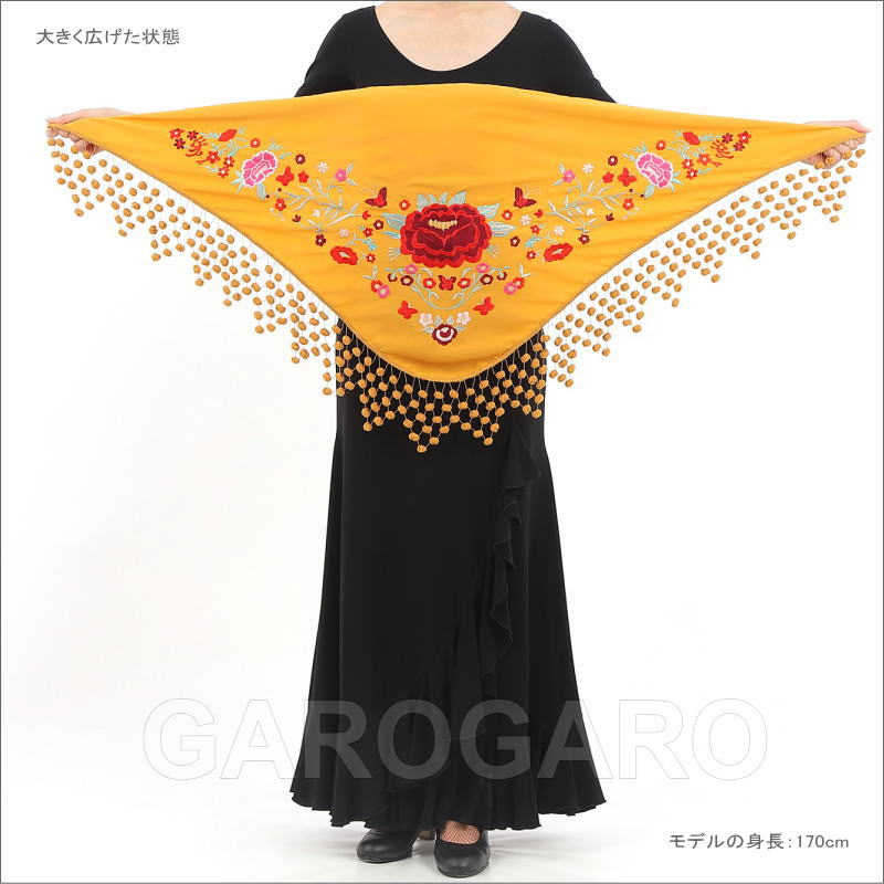 補足説明 お手入れ: ドライクリーニング(信頼のあるお店にご依頼ください) ・水洗いは避けてください。 ・フレコ(フリンジ)が縮れたときには、スチームアイロン(中温)で伸ばすことができます。 ----- ・刺繍の柄、色の組み合わせが画像と多少異なる場合がありますがご容赦ください。 ・生地部分が濃色のショールは、フレコと生地がこすれる部分が白っぽく見える跡がついてしまいますが、これは素材の特性で避けられません。 ・稀に水濡れなどで色移りする場合があります。 ・ご覧になるモニターによって、実物と写真の色合いが異なって見える場合があります。 ・刺繍や縫い目の糸の端が出ていることがありますが、ほつれてしまいますので、切ったり引っ張ったりしないでください。 ・スペイン製です。縫製が多少雑なことがあります。糸つれ、色むらなどがあったり、縫製用の印、針穴などが残っている場合があります。大きく目立つ場合は検品時に取り除きますが、舞台でご使用するのに問題ないと判断できる程度である場合は良品と判断致します。あらかじめご了承下さい。 |