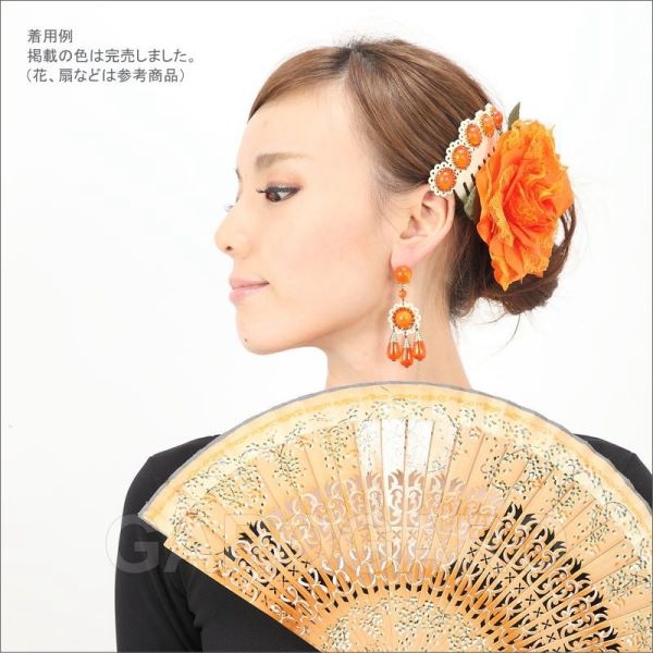 おすすめポイント: 涙型の飾りがついたイヤリング(ピアス)はフラメンコの定番の形。 衣装にあわせて選べるカラフルな色が舞台で映えます。 --- 【ピアス針つき】ピアス針とクリップが両方ついたスペインの留め具を使用しています。 --- 素材: プラスチック・金属 サイズ(縦の長さ×横幅)cm: 約6.7(飾り部分の長さ:4.3)×2.3 (掲載のサイズは製品の実測値です。多少の個体差がありますがご容赦ください。) 【コーディネイト例】 ・ラインストーンのペイネタ(櫛) Berta(ベルタ) 色:赤 ・あずき色のラナンキュラスとアイボリーの花の花束風 BU-28 |